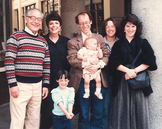 | It’s truly hard to believe that it’s already August second again. On this day in 1917 my father, Arnold Fox, was born in the Bronx. On the same day of the year in 1953, Beverly Fried was born in Dayton, Ohio. The picture I have attached here shows us together (with Mom, Reva, Deena, and Tamar) in London in the summer of 1985. My father was two years younger than I am now, and Bev was a youthful and beautiful thirty-two. I always miss them both, but seeing our family together at Renana and Brooke’s wedding this year I knew how much they would have enjoyed being with us, and how much I wanted to share the experience with them. But they gave us so much that they are always very much still with us. |